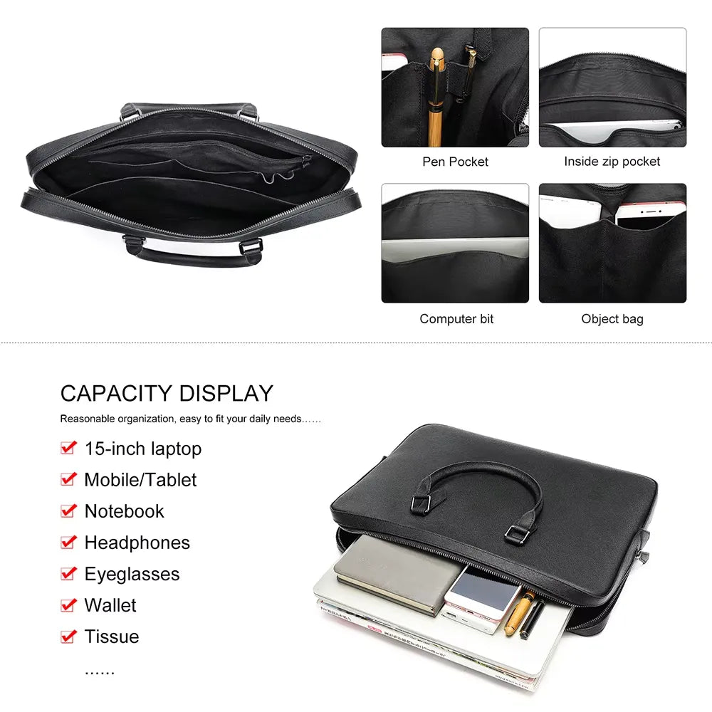 • Holds documents, charger, and daily essentials